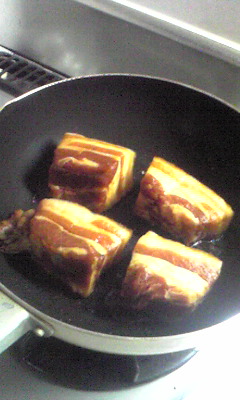 12月には牛すね肉の赤ワイン煮こみを三日がかりで作ったのですが、今回(日曜日)は角煮を一日がかりで作ってみることにした。
