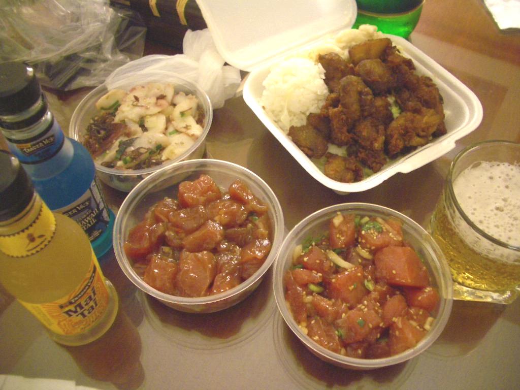 上写真:アヒポキ2種(しょうゆとオイスターソース)とタコポキ。
