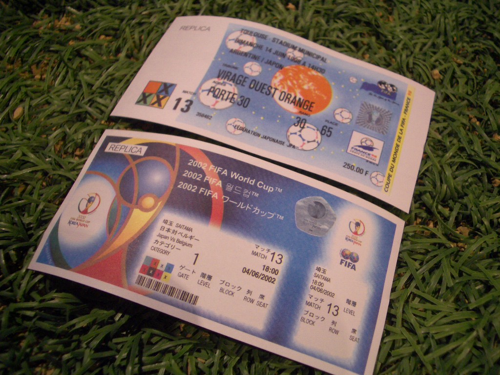 下右)有料エリアの入場券はワールドカップの試合観戦チケットのミニコピー版です。