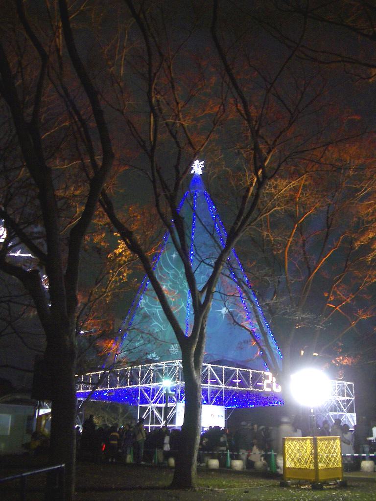 下右)日比谷公園のバカでかクリスマスツリー近景。