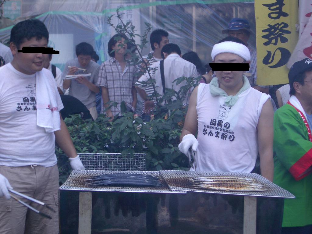 汗だくのにーちゃんたちが、みたこともないほど大量のさんまを焼いています。