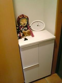 お友達の引越し祝いの時計と、これまた昔誕生日にお友達にいただいたパンクなテディベアをおいて。